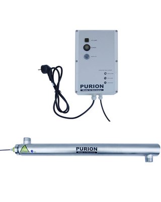 L'installation PURION® 2501 est disponible en acier inoxydable électropoli. Elle est utilisée pour la désinfection des eaux de circulation des piscines après filtration jusqu'à un volume de bassin de 50.000 l et une transmission (ou aussi une turbidité) de l'eau d'au moins 90% par cm. Un autre domaine d'application est celui des bassins à poissons d'une capacité maximale de 50.000 l avec une circulation continue. Les lampes UV utilisées se caractérisent par une longue durée de vie, une grande capacité de désinfection et une faible consommation d'énergie. L'alimentation électrique est de 230 V/50 Hz ou 110 V/60 Hz. Pour la réalisation de débits de dose plus élevés que 400 J/m² ou pour l'utilisation dans des milieux avec des transmissions inférieures à 60% par cm, l'installation PURION 2501 peut également être équipée de lampes de puissance plus élevée. L'alimentation électrique est ici de 230 V/ 50 Hz ou 110 V/60 Hz.